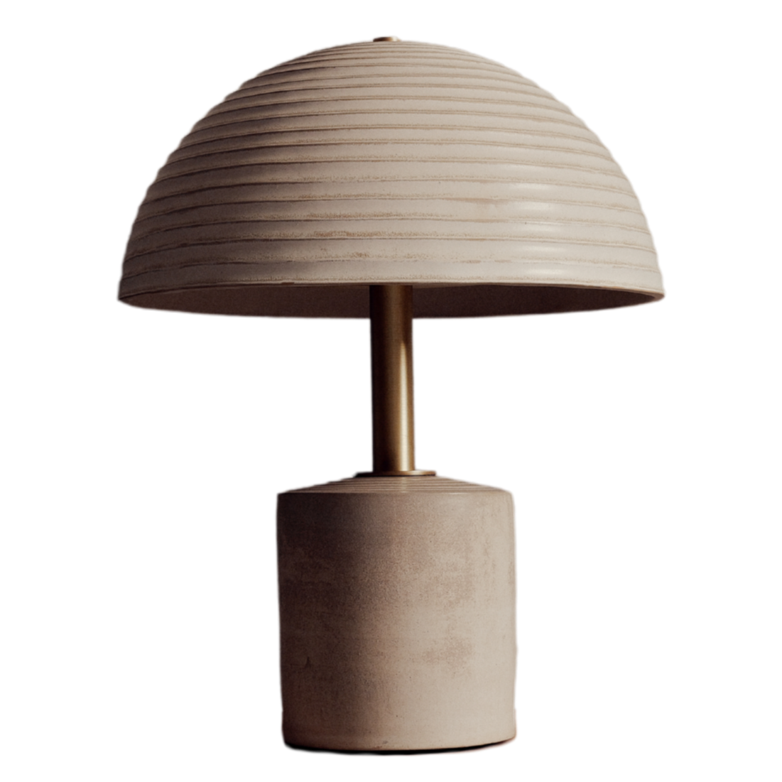 Each piece is handcrafted in stoneware and brass, shaped and finished individually. The brass stem is hand-turned by an artisan, honouring the precision of traditional craft. Brass, a noble and living material, evolves over time, giving each lamp its own unique character.